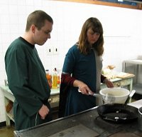 ![]() Me and Llewellyn frying Chicken McNuggets. | Poach the chicken breasts in the chicken stock (make sure they’re cooked through). Cut breasts into bite-sized pieces.