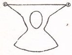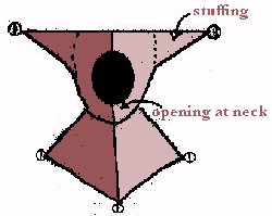 (4) Jester figure from Bodlein MS 964, 1344, redrawn by Houston CONSTRUCTIONThe tunic itself was a simple 14th-century particolour, worn belted, as in the Luttrell Psalter illustration, (3) above. The distinctive feature of the costume is the hood, which was more complex. Some elements of construction are obvious from the pictures; I have, for example, taken the square-cut shoulder cape with bells at the shoulders and central point, from the left-hand Psalter picture, (1) above. Likewise, the two-pointed hood follows both the right-hand Psalter illumination (2) and the Bodlein MS picture redrawn by Houston, (4) above. Since the pictures seem to suggest a certain amount of stiffness in the points, I stuffed the points and sewed them closed. Houston’s chapter on the construction of fourteenth-century garb gives a hood structure similar to Fig (4) above, with the cape and headpiece in one piece (see below). I chose to cut them separately as I didn’t have the necessary fabric left over to cut them in one piece.