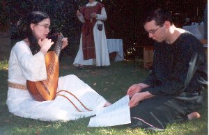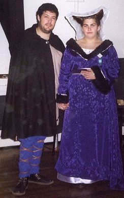 Device: per chevron sable and vert, a dragon segreant and in chief two flutes bendwise argent. Drakewhistle is a small medieval village in Yorkshire, and owes its existence to my extended Rolemaster campaign set in Britain in the 12th century. Drakewhistle is now a small and intermittently active household composed of anyone who has ever played in that Rolemaster game or any of my other games run in the same Sunday afternoon slot, plus, by courtesy, their significant others, plus various hangers-on. Some members (Kate and Llewellyn) are in exile overseas, alas, but are nonetheless still household members. Our activities centre mainly around forming an organisational unit at SCA events, with the odd household dinner thrown in. We have been known to perpetrate theatrical performances. Household members